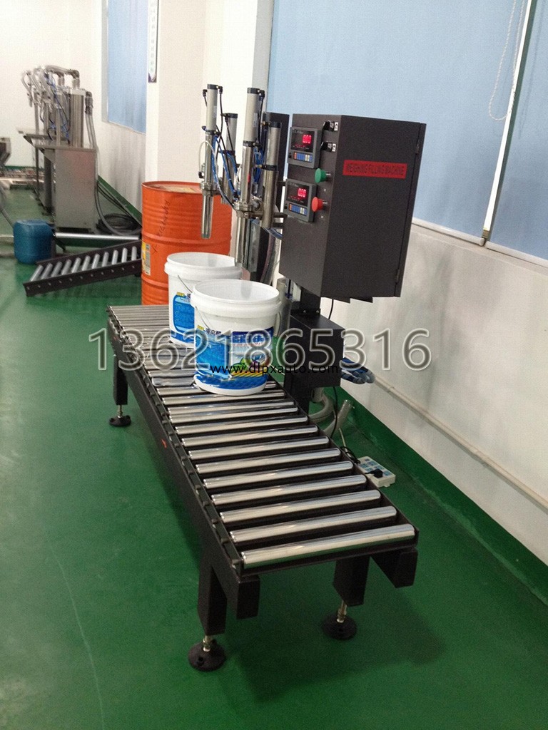 稱重灌裝機(jī) YCS-GZ 5-20kg 桶裝稱重灌裝專用 特征1、灌裝方式:自上而下灌裝。 2、控制方式:手動(dòng)設(shè)定灌裝方式,微動(dòng)開(kāi)關(guān)控制。3、輸送方式:無(wú)發(fā)動(dòng)機(jī)滾筒輸送。4.自帶數(shù)顯灌裝量功能,可完成多種灌裝量 環(huán)境。5.自動(dòng)去皮,按凈重灌裝功能。6、自帶真空抽吸功能,避免防滴漏。7.具有手動(dòng)和自動(dòng)微動(dòng)開(kāi)關(guān)控制系統(tǒng)功能。8.雙速控制功能,防止飛濺。9、具有應(yīng)急處理功能,避免誤操作,斷電保護(hù)