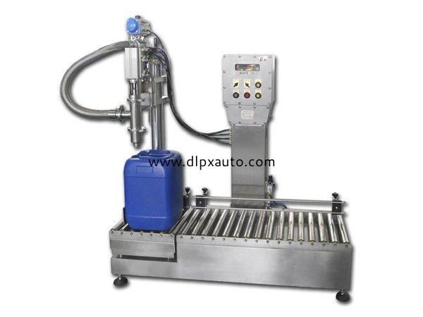 采用液面上/液面下兼用的灌裝方式,可充氮保護,可適用于多種液體物料的灌裝;設(shè)計可調(diào)節(jié)氣動球閥和噴槍,既提高了灌裝速度,同時又確保了灌裝精度;減少灌注完畢時殘液的滴漏;集氣罩可避免灌裝過程中揮發(fā)氣體的泄出,可以保護操作工。操作時,操作者僅需簡單地將空桶口對準(zhǔn)噴槍嘴正下方;按下“啟動”按鈕,噴槍自動下降進入桶底,空桶自動去皮,充氮,然后正確地雙速灌裝;噴槍隨液面升高而升起,灌裝結(jié)束,噴槍自動提升至桶外,一個循環(huán)即告完成。