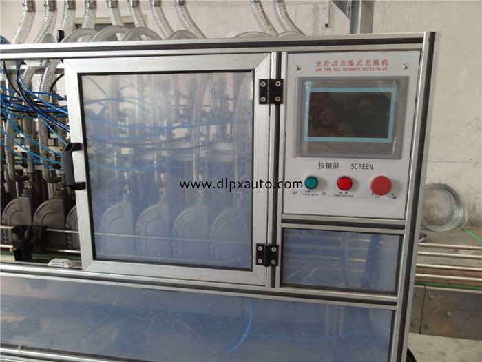 直線液體灌裝機(jī)本機(jī)采用PLC可編程控制,配以5.7英寸觸摸屏人機(jī)界面系統(tǒng)灌裝量的調(diào)節(jié)、灌裝速度快慢、整個(gè)設(shè)備系統(tǒng)都在人機(jī)界面上輕輕-按