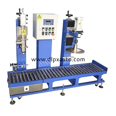 本設(shè)備是20L防爆式平板壓蓋灌裝機(jī)(型號(hào)YCS-20L)廣泛應(yīng)用于化工、糧食、農(nóng)藥等與液體狀物料相關(guān)的行業(yè),適用在聚氨酯、多元醇、聚醚、聚酯、樹脂、涂料、油漆、油墨、膠粘劑、固化劑、染料、清洗劑、機(jī)油、潤(rùn)滑油、食用油、香精、溶劑、助劑、農(nóng)藥及其他危險(xiǎn)性化學(xué)產(chǎn)品等產(chǎn)品中。動(dòng)作流程:人工將空桶放到秤臺(tái)上,,然后點(diǎn)擊啟動(dòng)按鈕,儀表首先判桶并扣除空桶皮重,灌裝頭下降并插入桶內(nèi)并打開進(jìn)入快速落料,當(dāng)達(dá)到慢進(jìn)