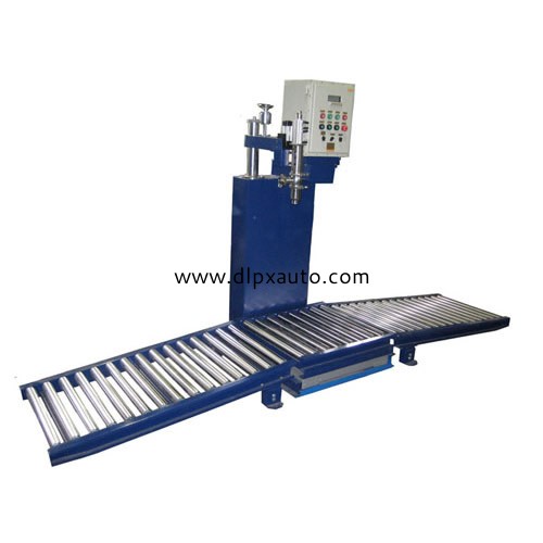 本設(shè)備是200L液面式灌裝機(型號YCS-200L)廣泛應(yīng)用于化工、糧食、農(nóng)藥等與液體狀物料相關(guān)的行業(yè),適用在聚氨酯、多元醇、聚醚、聚酯、樹脂、涂料、油漆、油墨、膠粘劑、固化劑、染料、清洗劑、機油、潤滑油、食用油、香精、溶劑、助劑、農(nóng)藥及其他危險性化學(xué)產(chǎn)品等產(chǎn)品中。動作流程:人工將空桶放到秤臺上,,然后點擊啟動按鈕,儀表首先判桶并扣除空桶皮重,灌裝頭插入桶內(nèi)打開進入快速落料,當達到慢進料設(shè)定重量時