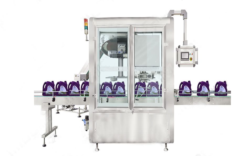 單頭旋蓋機(jī)是一種方便用于擰緊或旋松各種瓶蓋的小型設(shè)備,,該設(shè)備備有恒扭矩旋蓋頭。結(jié)構(gòu)緊湊、合理,能方便與其它設(shè)備聯(lián)動(dòng)成線。直線式設(shè)計(jì),組成流水線方便美觀。采用強(qiáng)電磁旋蓋扭力器,解決了傳統(tǒng)機(jī)械摩擦片在旋蓋中時(shí)緊時(shí)松的弊病。