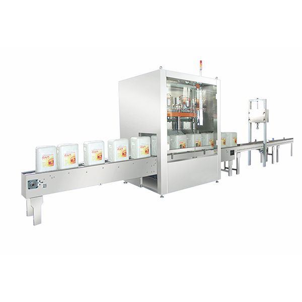 YCS-35系列稱重式液體液體灌裝機(jī)可與打印機(jī)、打碼機(jī)、貼標(biāo)機(jī)、打包機(jī)、封箱機(jī)、碼垛機(jī)輸送機(jī)及其它配套設(shè)備配合使用,根據(jù)不同的物料及工藝要求,組成全自動(dòng)灌裝生產(chǎn)線。