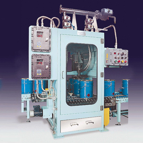 噸桶液體灌裝機同樣可滿足多種液體自動灌裝的需要。該秤采用液面上或液面下灌裝,,能將多種液體按預設值灌入放在拖盤上的無蓋(或有孔)的多個容器內(nèi),設計*的噴嘴裝置易于操作,灌裝快速、精確,并且zui大限度地減少灌注完畢時殘液的滴漏。操作時,操作者僅需簡單地操縱手柄控制噴嘴使桶口對準噴嘴嘴正下方,然後定位并鎖緊。按下”啟動”按鈕,噴嘴自動下降,空桶去皮,然後雙速/三速灌裝,保證灌裝精度。灌裝結束,噴嘴自動提升桶外,操作者移動噴嘴對準下一桶的桶口,再按下”啟動”按鈕,……,灌完同一托盤上的多個桶,一個循環(huán)即告完成。