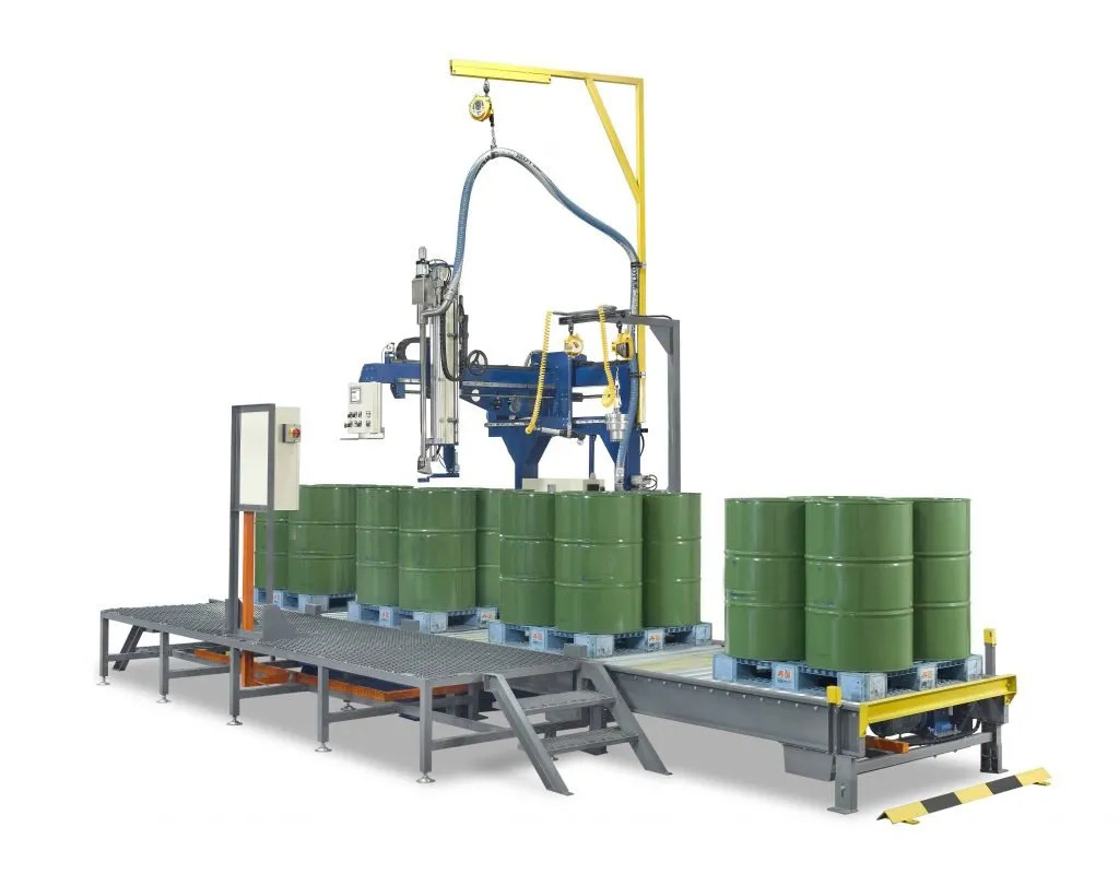 防爆液體灌裝機(jī),自動(dòng)進(jìn)桶-自動(dòng)開(kāi)門-自動(dòng)關(guān)門-自動(dòng)灌裝-自動(dòng)出桶,輥軸輸送,灌裝高度可調(diào),適合IBC噸桶、四大桶等各種大桶的液體灌裝,多種出料方式設(shè)置,滿足客戶一機(jī)多用,多品種灌裝,快慢速灌裝保證灌裝精度,穩(wěn)定性好,減少損耗,節(jié)省成本,減輕工人操作壓力。