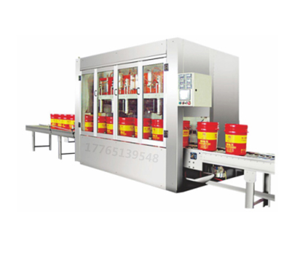 設(shè)備操作流程一般如下:開機(jī)---人工放桶到秤臺快速定位對口---系統(tǒng)自動偵測將定位---自動去皮---自動打開搶及球閥組開始灌裝--大、中、小、微量四段灌裝---到達(dá)目標(biāo)值---灌槍自動關(guān)閉并升至桶外---人工鎖蓋、碼垛。