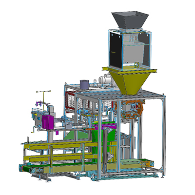 適用于新能源正負(fù)極新材料25kg袋裝的自動(dòng)包裝,包括自動(dòng)供袋、取袋、吸袋、開袋、計(jì)量、充填、落袋、移袋、折邊、縫包、熱合、噴碼、倒包等工作。
