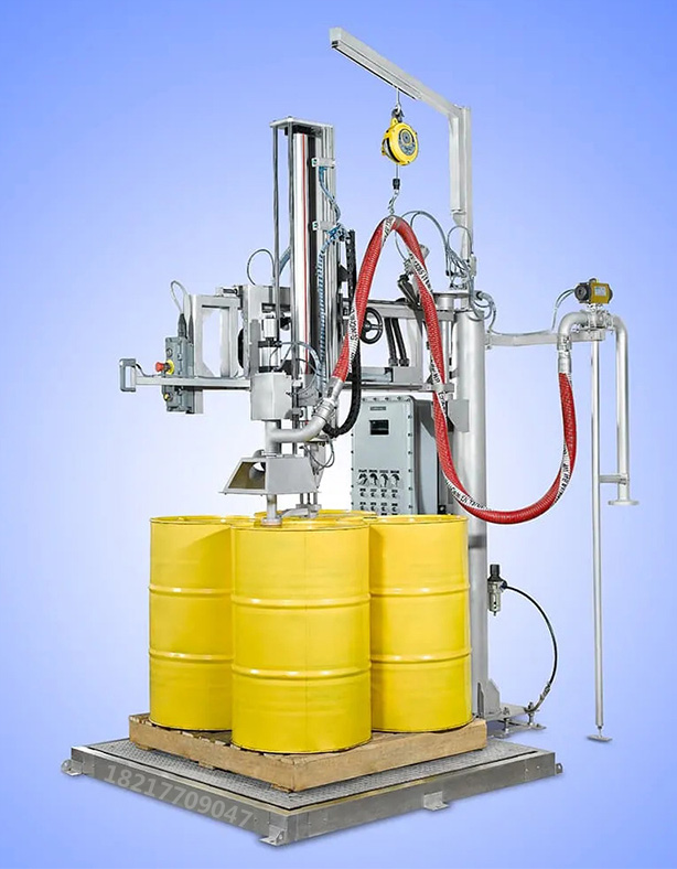 灌裝頭高度可手搖調(diào)節(jié),適用于不同高度的包裝桶;