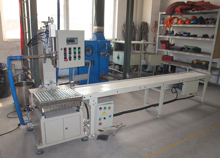 操作流程:開機(jī)---人工放桶至秤臺(tái)---按【開始】鍵、灌槍自動(dòng)插入包裝桶底部--自動(dòng)去皮--自動(dòng)打開灌槍開始灌裝---大、小、微量三段式灌裝---灌槍隨液面自動(dòng)提升--到達(dá)目標(biāo)值--灌槍自動(dòng)關(guān)閉并升至桶外---灌裝完成。