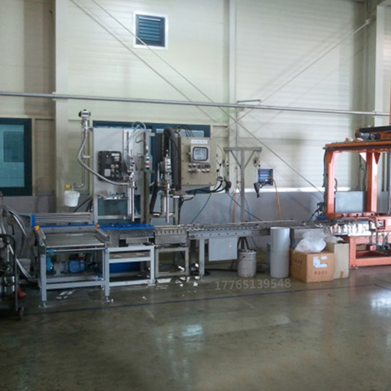 操作流程: 空桶自動(dòng)輸送 - 空桶撥至稱重區(qū)同時(shí)自動(dòng)對(duì)桶口 - 空自動(dòng)除皮 - 自動(dòng)定量 - 自動(dòng)推桶至鏈板輸送線 - 自動(dòng)上蓋同時(shí)自動(dòng)鎖蓋 - 重桶輸送到重桶待提區(qū) - 人工提走即完成