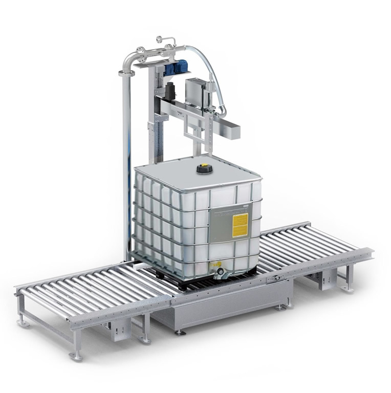 人工將空桶放到空桶暫存區(qū),自動輸送到秤臺上,,然后點擊啟動按鈕,儀表首先判桶并扣除空桶皮重,灌裝頭插入桶內(nèi)打開進(jìn)入快速落料,當(dāng)達(dá)到慢進(jìn)料設(shè)定重量時,自動轉(zhuǎn)為慢速落料。當(dāng)重量達(dá)到目標(biāo)值時停止落料,此時灌裝頭復(fù)位到初始位置,儀表回皮顯示總重,自動輸送到成品暫存區(qū),待叉車取走,整個動作流程結(jié)束。