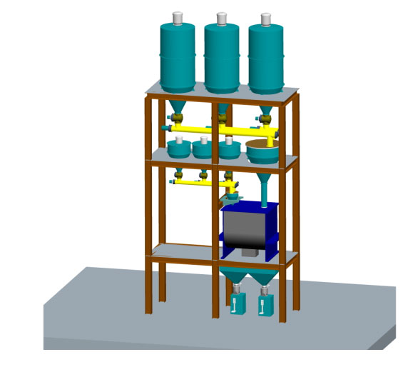本公司多年來積累了大量自動(dòng)配料生產(chǎn)線的設(shè)計(jì),制造經(jīng)驗(yàn)。根據(jù)客戶不同的配方類型:不同物料間的不等重量配方,相同物料間不同粒徑,色差等參數(shù)按照總量的百分比進(jìn)行配制。我們根據(jù)所有參加配比的物料特性選擇適宜的給料機(jī)構(gòu),根據(jù)所有配方總數(shù)決定原料儲(chǔ)倉的排列方式(環(huán)型群倉或"一"字排列倉),根據(jù)配方中大和小配方量,判斷一只計(jì)量倉是否滿足計(jì)量規(guī)程要求(小配方需小量程計(jì)量機(jī)構(gòu))。對(duì)混和料的處理我