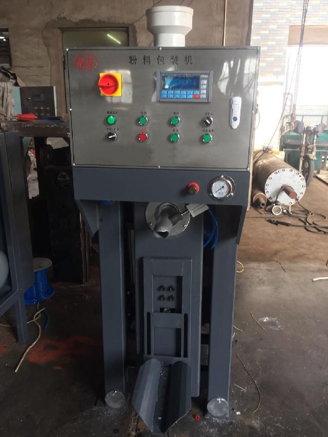 3. 自動卸袋,操作員只要將空袋插入進料的噴口,包裝機自動進料,定量包裝完成后自動卸袋。