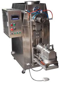 將閥口包裝袋套在加料嘴上,按動(dòng)“允加”按鈕,這時(shí)壓袋氣缸開(kāi)始工作并壓住袋口,控制器將包裝袋重量自動(dòng)去除,破拱電機(jī)緩慢轉(zhuǎn)動(dòng),保證下料暢通。加料螺旋高速轉(zhuǎn)動(dòng)迅速將物料灌入袋中,隨袋中空氣一起溢出的粉塵通過(guò)吸塵器由除塵器吸走,振動(dòng)裝置同時(shí)啟動(dòng)將托盤(pán)上袋中物料振實(shí)充滿(mǎn)袋角。待加料快到設(shè)定值時(shí),加料螺旋進(jìn)行減速慢加,到設(shè)定值時(shí),加料停止。誤差<0.3%。這時(shí)壓袋氣缸松開(kāi)袋口,將包裝袋放在皮帶輸送機(jī)上及時(shí)送出。