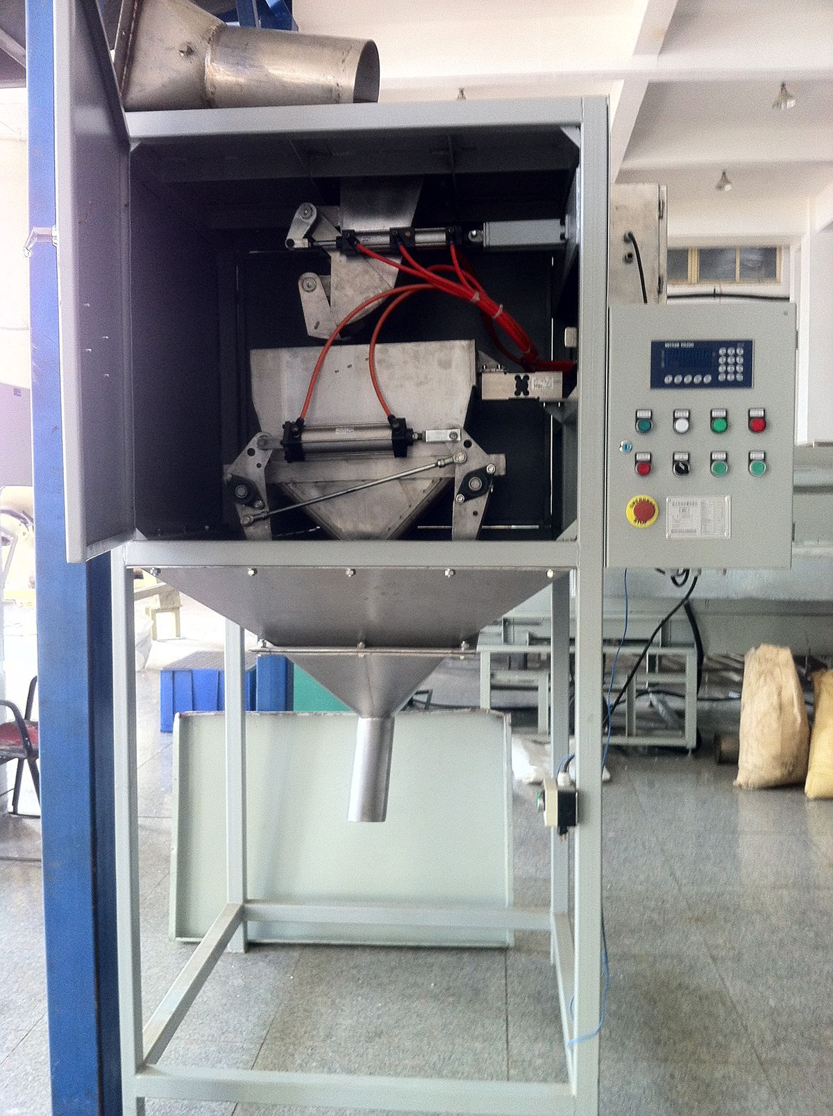 一、 結(jié)構(gòu)原理 DLPX-25閥口閥口袋包裝機(jī)采用內(nèi)部稱(chēng)量斗自流式凈重計(jì)量,內(nèi)部稱(chēng)量斗計(jì)量可以防止外部人為及環(huán)境干擾產(chǎn)生的誤差,同時(shí)可以消除物料落差產(chǎn)生的沖擊干擾。此型包裝機(jī)灌裝口既可為閥口袋灌裝,又可為敞口袋灌裝,灌裝完成后由氣缸自動(dòng)將袋子推出。此型包裝機(jī)適用于流動(dòng)性較好的顆粒物料及精體物料,不適用于粉粒。 二、 技術(shù)特點(diǎn) 1. 特殊灌裝形式設(shè)計(jì),可用于對(duì)敞口袋和
